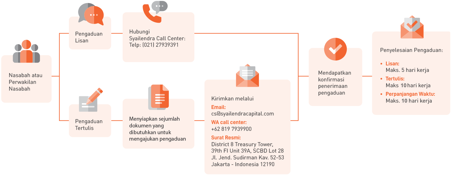 Selamat datang di Layanan Pengaduan Nasabah PT Syailendra Capital. Kami hadir untuk memberikan pelayanan terbaik bagi para nasabah setia dan menepati komitmen kami dengan penuh rasa tanggung jawab. Melalui halaman ini Anda dapat memperoleh informasi terkait prosedur pengaduan masalah seputar investasi reksa dana dan produk - produk reksa dana PT Syailendra Capital, dll.